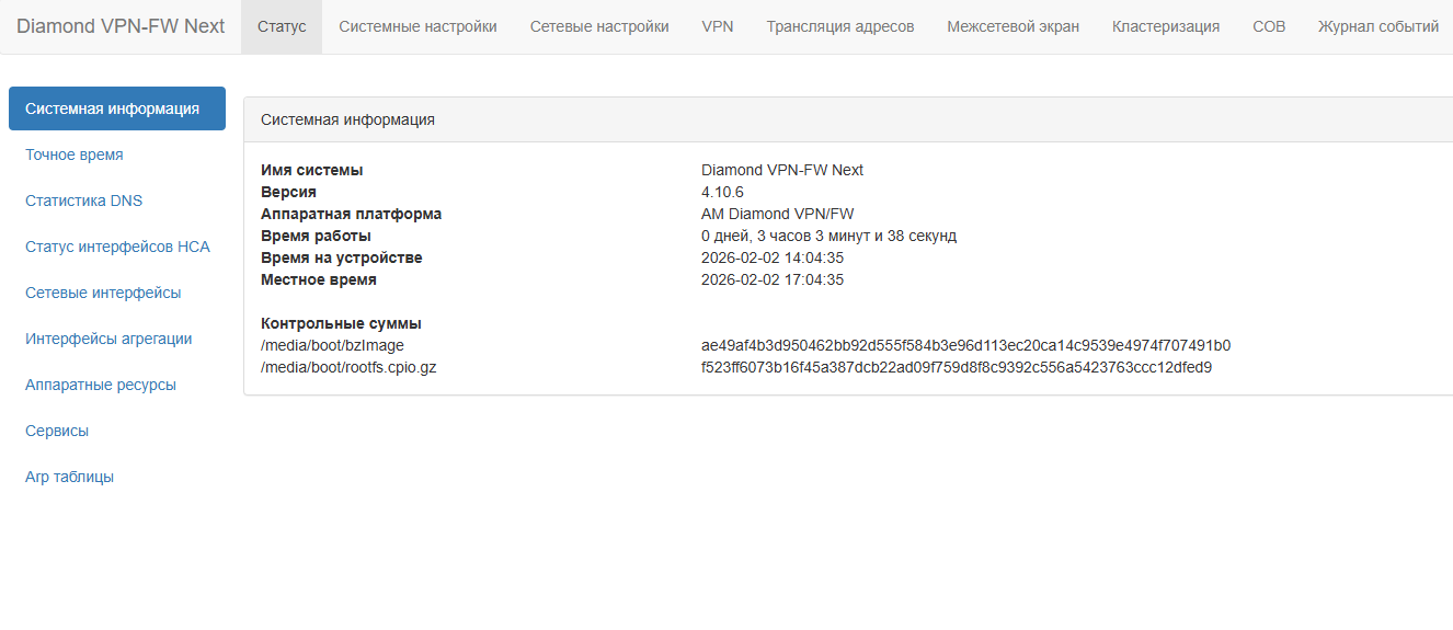 Контрольная сумма снимается автоматически при загрузке устройства, информацию о ней можно найти, выбрав пункт «Статус - Системная информация».