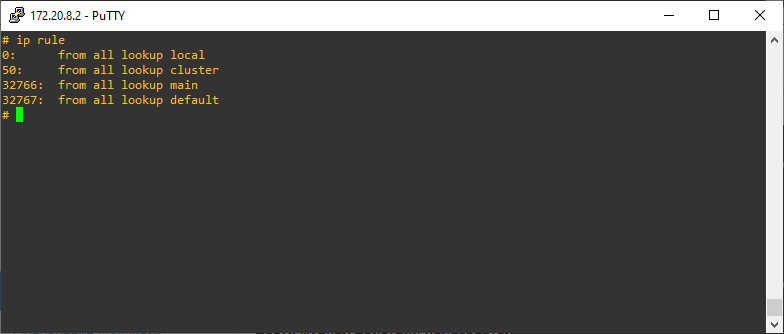Для просмотра расширенных таблиц маршрутизации необходимо подключиться к устройству по протоколу ssh. Для просмотра таблиц маршрутизации необходимо выполнить команду «ip rule».